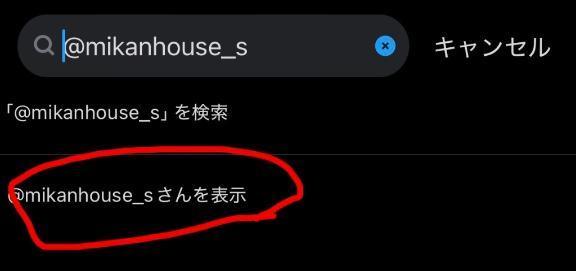 「@mikanhouse_sを表示」って押さないと検索引…